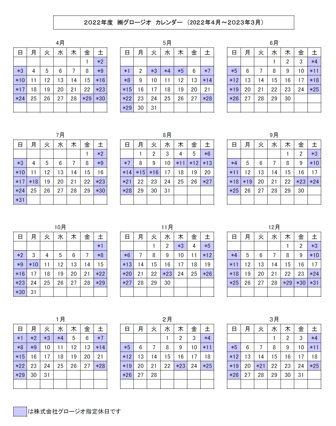 2022年度 営業カレンダー